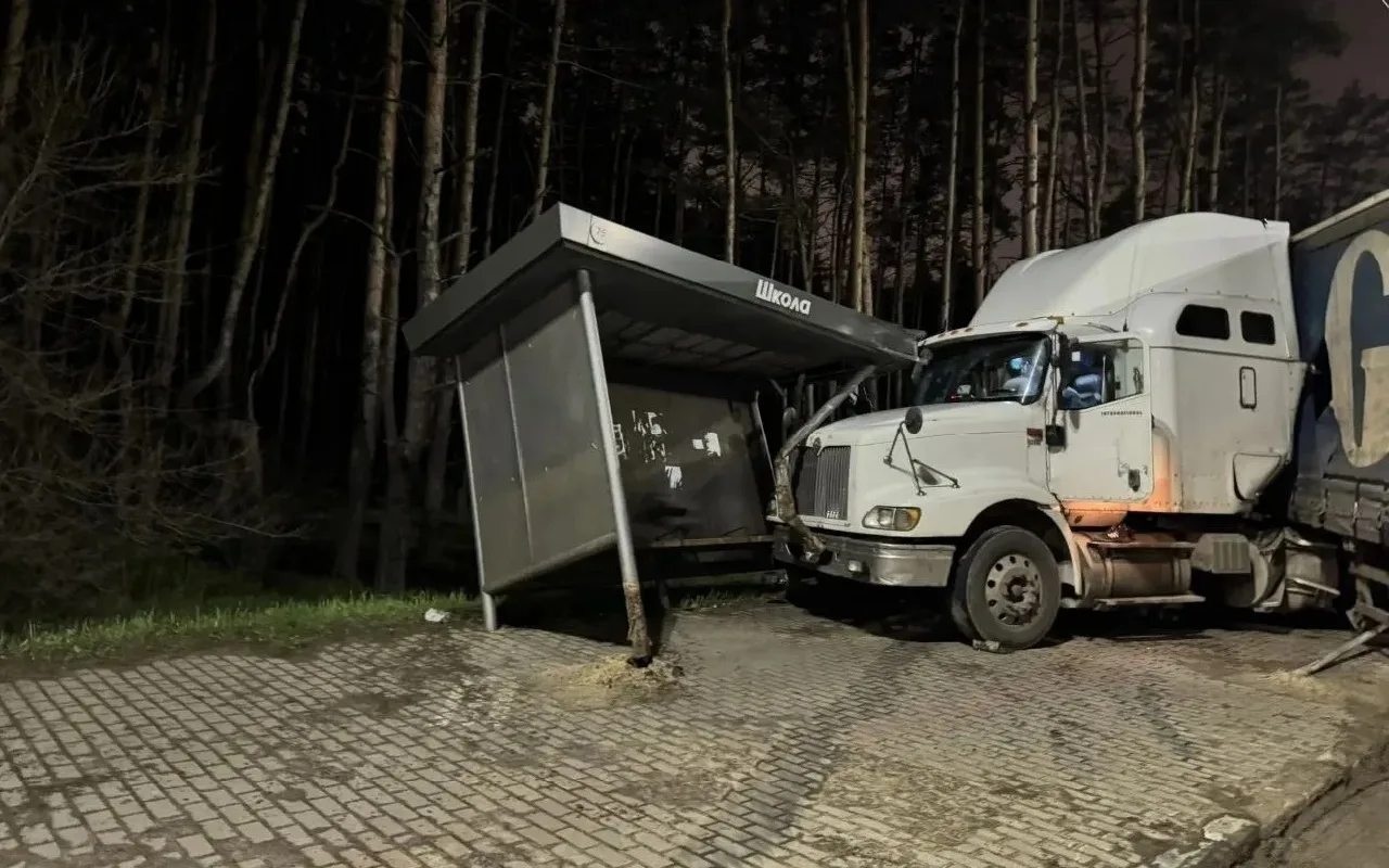 Водитель фуры протаранил остановку «Школа» в воронежском микрорайоне Подгорное