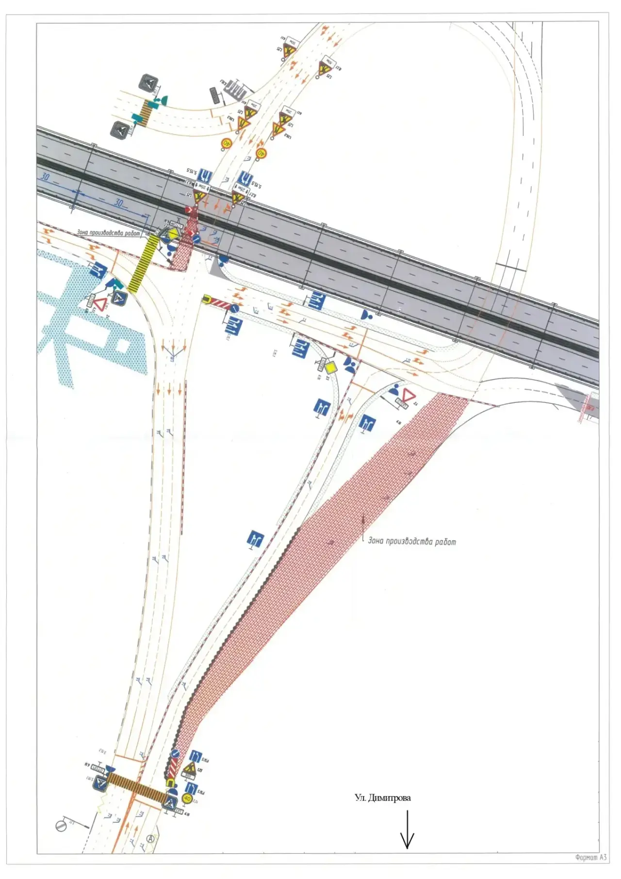 Для движения по Ленинскому проспекту в направлении улицы Димитрова, а также для правого поворота с улицы Остужева (при следовании от Северного моста) в пределах кольца был организован временный Т-образный перекресток. Изменения были связаны с выполнением работ по строительству инженерных сетей.