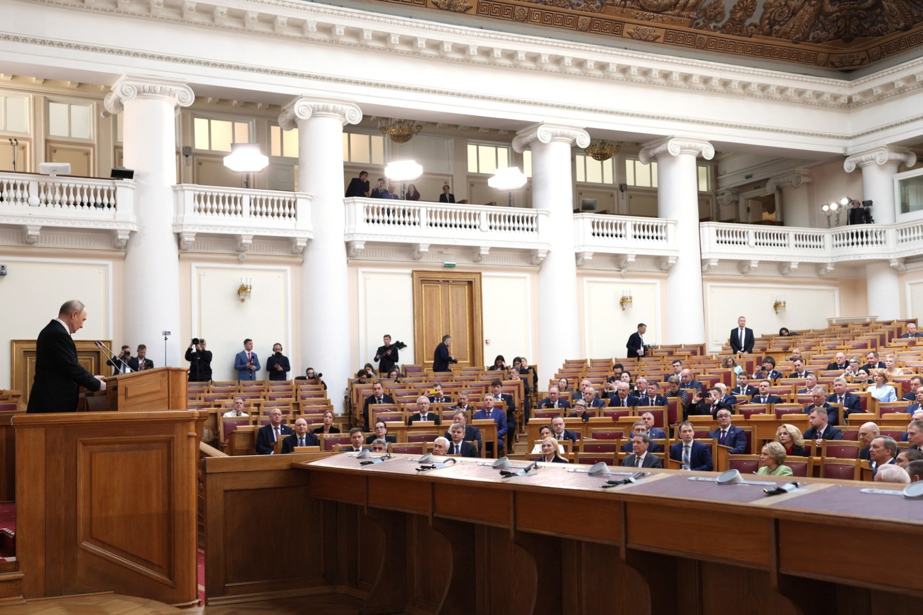 Глава государства поздравил всех присутствующих с праздником. Он подчеркнул, что 27 апреля 1906 года именно в этом зале прошло первое заседание Государственной Думы. В ту эпоху сам факт её учреждения, проведение выборов стали событиями колоссальной общественной, государственной значимости. Многие видели в этом новый этап развития страны, надежду на масштабные преобразования в России.