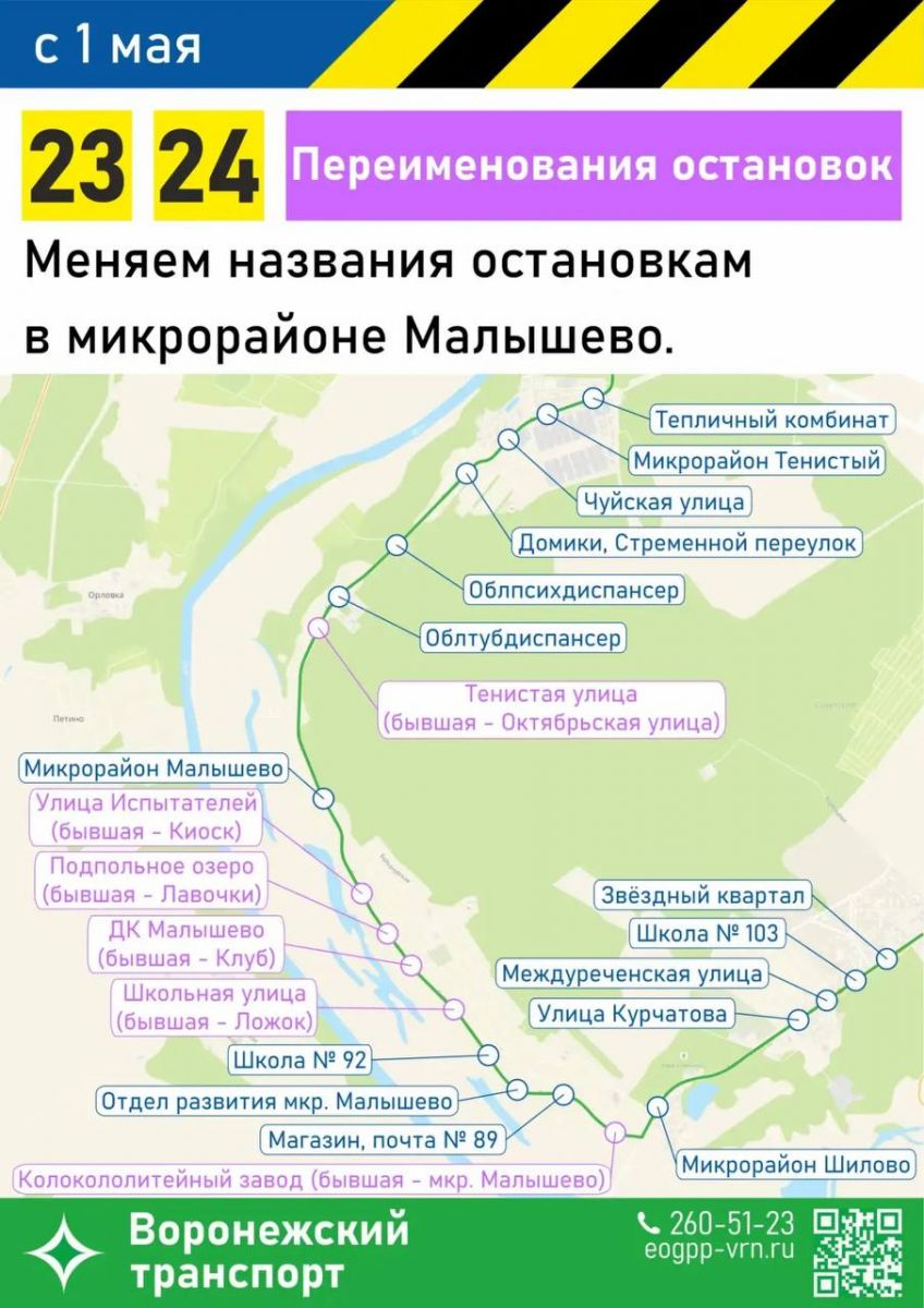 В воронежском микрорайоне Малышево с первого дня мая шесть остановочных пунктов получат новые официальные названия. Решение приняли в Управлении транспорта города, учитывая пожелания местных жителей.