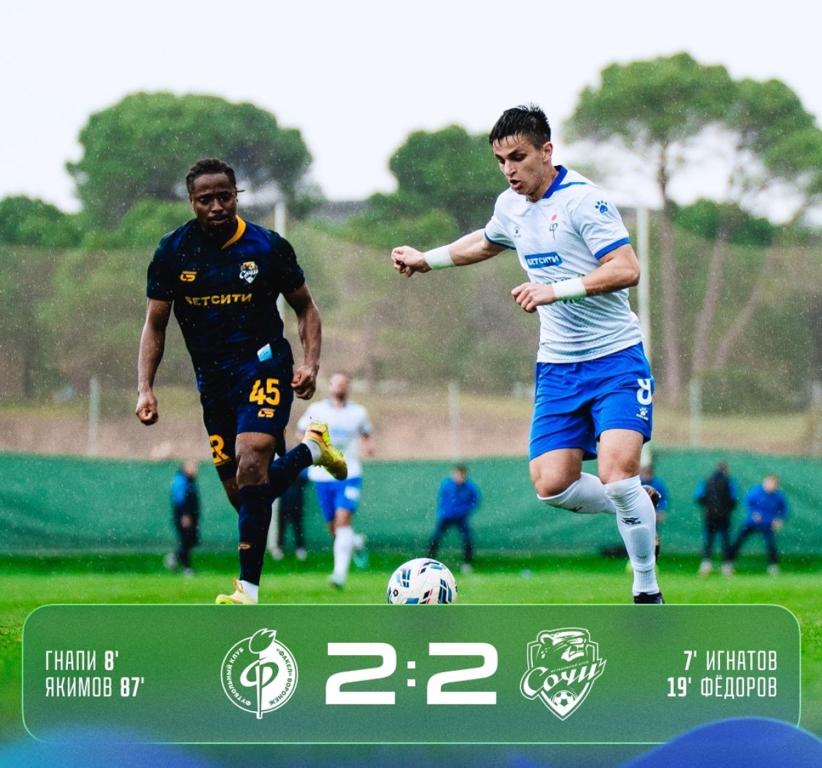 На тренировочном сборе в Турции воронежский «Факел» провёл товарищеский матч против ФК «Сочи». Команды разошлись миром: итог игры - 2:2.