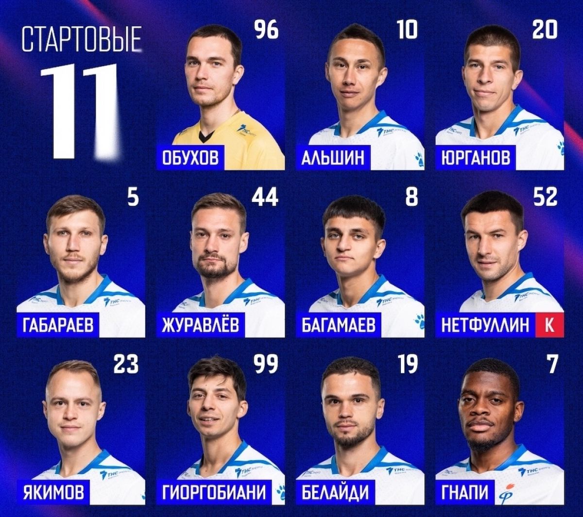 Команды вышли на поле в следующих составах: